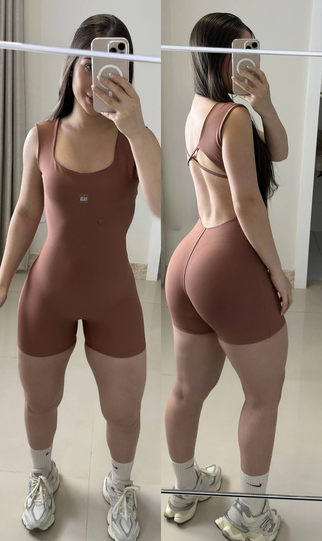 Macaquinho todo no poliamida canelado 3D, super macio e confortável, possui bojo removível e costas abertas !