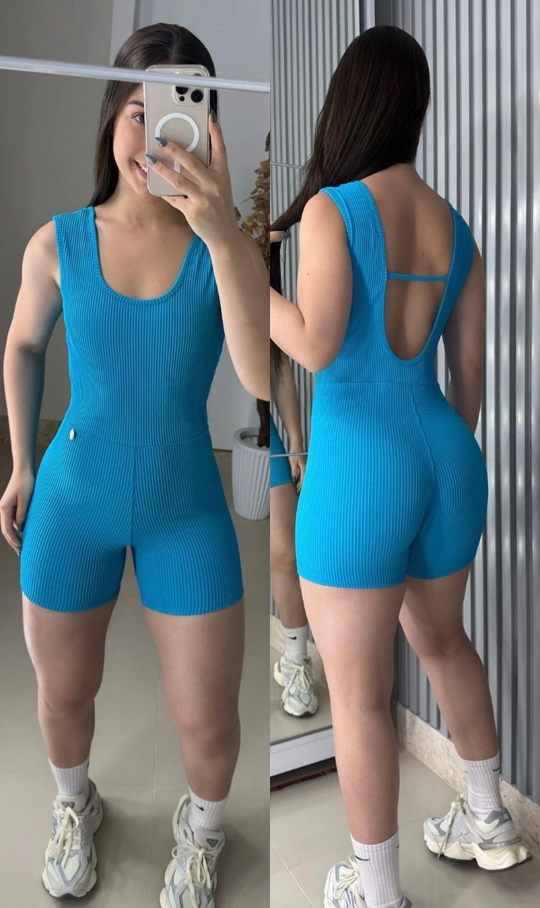 Macaquinho todo no poliamida canelado 3D, super macio e confortável, possui bojo removível e costas abertas !